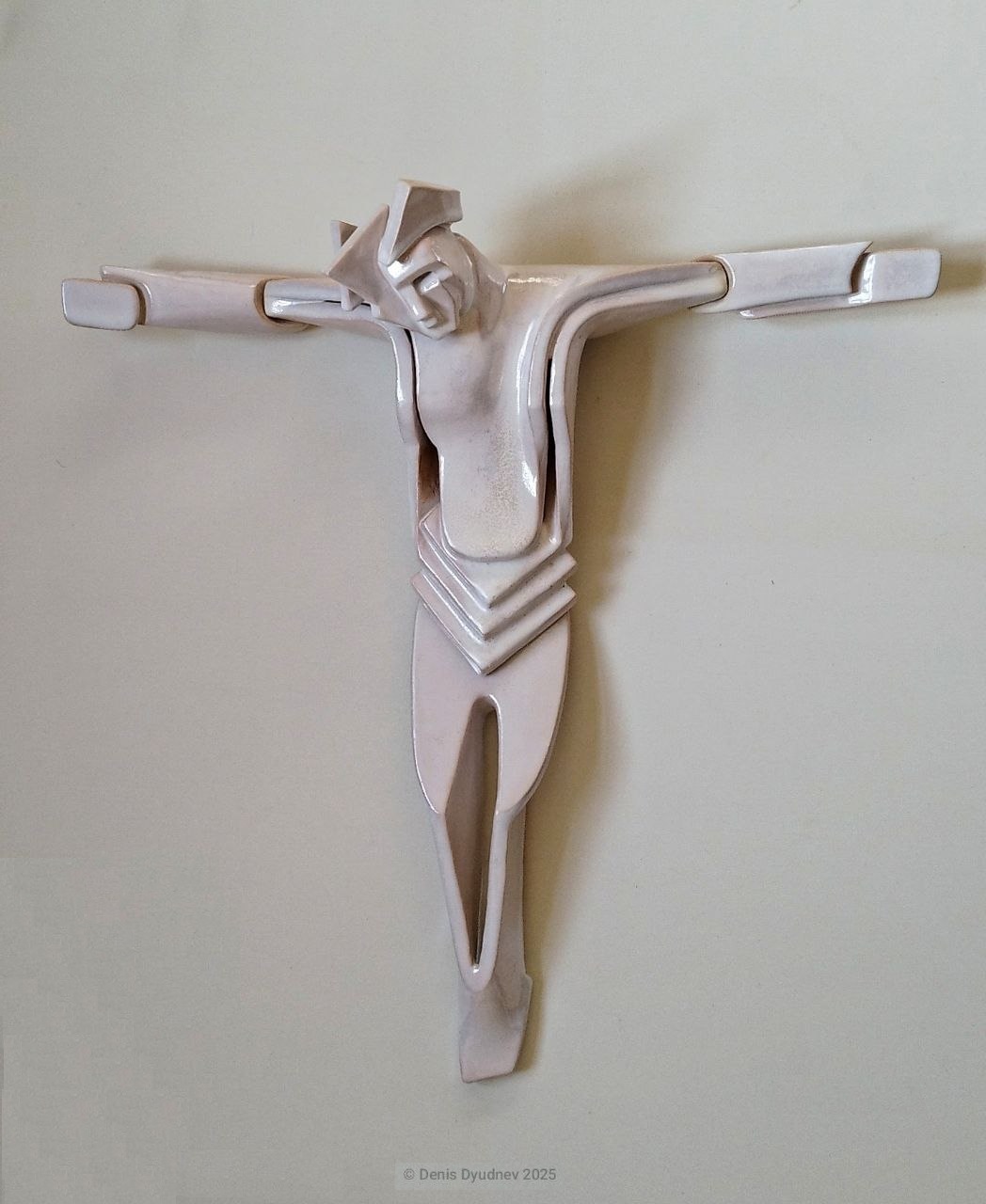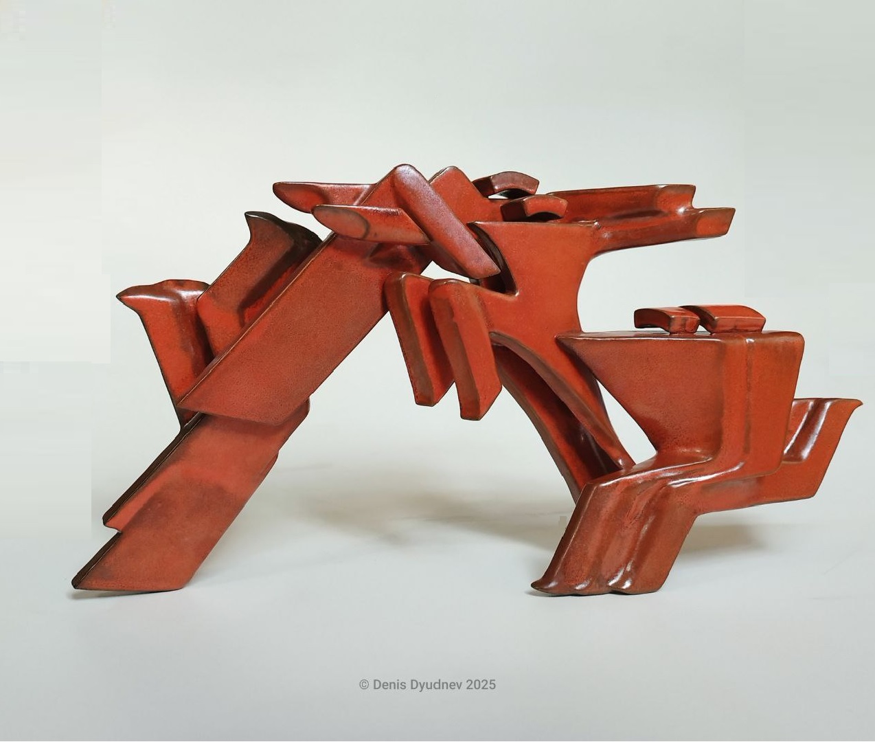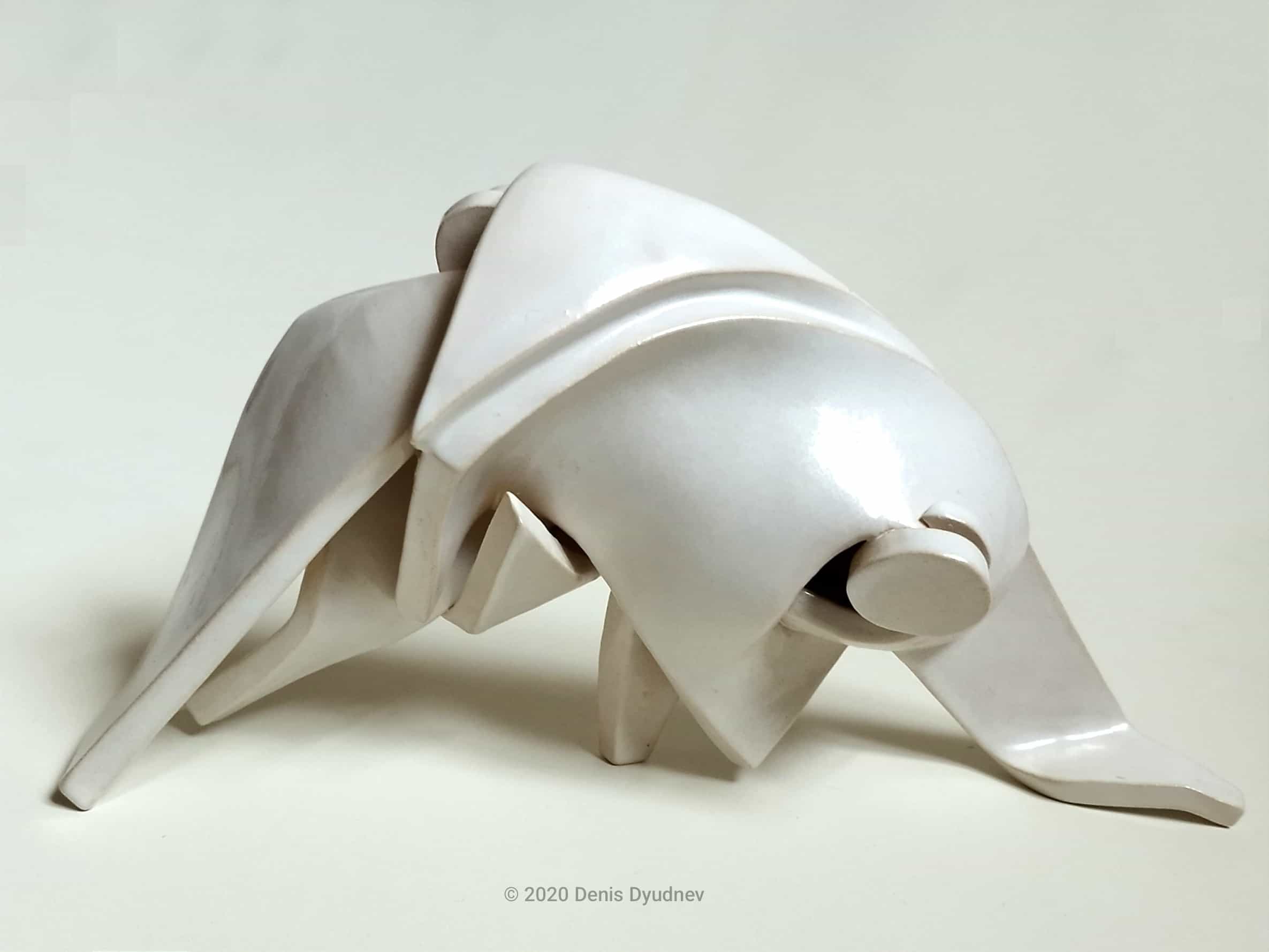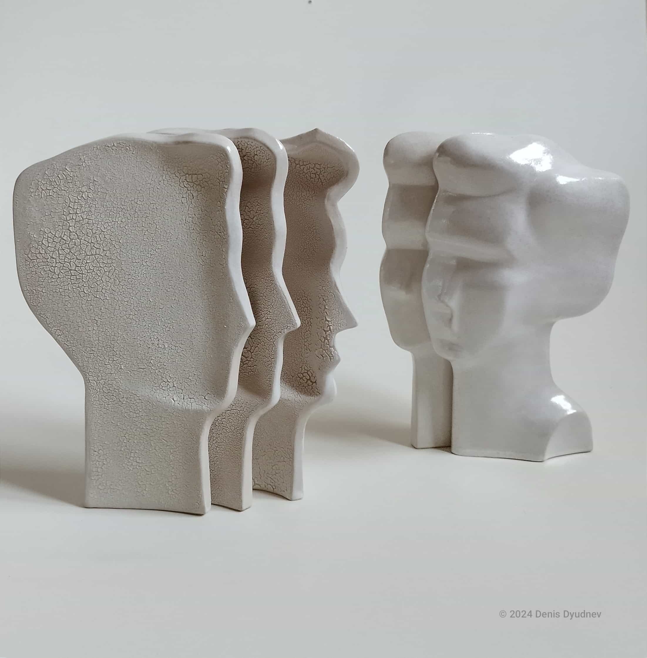 История скульптуры в керамике имеет давние традиции, но при внимательном изучении опыта поколений обнаруживаются белые пятна и ограниченность восприятия керамики в основном как прикладного вида творчества, связанного в первую очередь с гончарным кругом. Следуя мысли, что никакой опыт не должен становиться догмой и мешать развитию в своих работах я пытаюсь найти достойное место скульптуре в керамике, ориентируясь на революционный авангард 20-х годов, связанный в том числе и с русской иконой, а также на конструктивизм в скульптурах Наума Габо или абстрактную ассоциативность Ханса Арпа и Хелейн Блюменфельд. Скульптура- рассказ содержания языком формы, которая имеет четкие, осязаемые границы и избавлена от иллюзорности изображения, свойственного живописи или графике, поэтому нужно быть особенно точным в настройке каждой формы постепенно приручая ее, но это правило несколько меняется, поскольку пространство между объемами в моих скульптурах важнее самих объемов, не пространство является границей объёма, а объём становится границей пространства. Я развиваю направление керамической скульптуры имеющую в основе синтез формы и цвета, часто балансируя на грани абстракции, но все же оставаясь в фигуративном пространстве, постепенно освобождаясь от несвойственной для скульптуры модерна повествовательности-внешним проявлениям вещи, приоритет отдается композиции пространства, линии, движению, декоративному цветовому решению. Как сказал Михаил Чехов: "Всякое искусство стремится стать музыкой." Абстракция –это мелодия без слов, но наполненная ассоциациями. Это отсылает к целям иконописцев при написании икон. Зачем удваивать реальность, когда есть потребность оторваться от нее? Уплощенность пространства в некоторых работах уводит от реальности, пространство становится плотным и густым, созвучным времени. Сам изображаемый объект, существует вне времени, но осмысляется по-новому. Аскетизм изобразительных приемов, позволяет добиваться максимальной выразительности минимальными средствами. Технология в керамике первична, но именно она придает самобытность пластике и оригинальность стилистическому решению. Профессионал обязан владеть всеми основными техниками в керамике, потому-то каждая из них раскрывает материал по-разному. Комок глины, раскатанный в пласт, из которого извлечена выкройка для формы, в свернутом виде представляют собой пустотелый объем. Форма из пласта упруга и лаконична, а ее лини чисты и честны. Сам пласт в моих работах часто имеет значительную толщину, что придает монументальность и декоративность. После того как работа проходит обжиг, она преображается и не только по цвету, пластика утверждается в своей законченности и совершенстве.