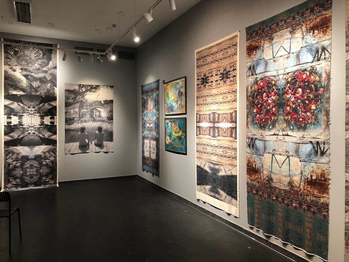 В экспозиции авторов представлены необычные произведения декоративно-прикладного искусства, живописи, костюма, невероятные инсталляции, и даже «фрески на ткани».