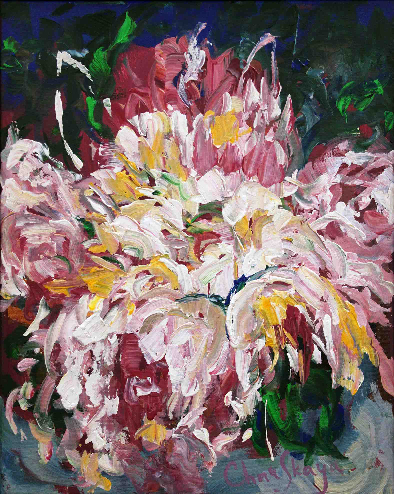 В проекте происходит органичное слияние музыки и живописи. Полотна Чарской создают визуальный эквивалент музыкального звучания, превращая ритм, динамику и интонацию в цвет и форму. Через флористические абстракции художница раскрывает символику изящества, гармонии и величия природы.