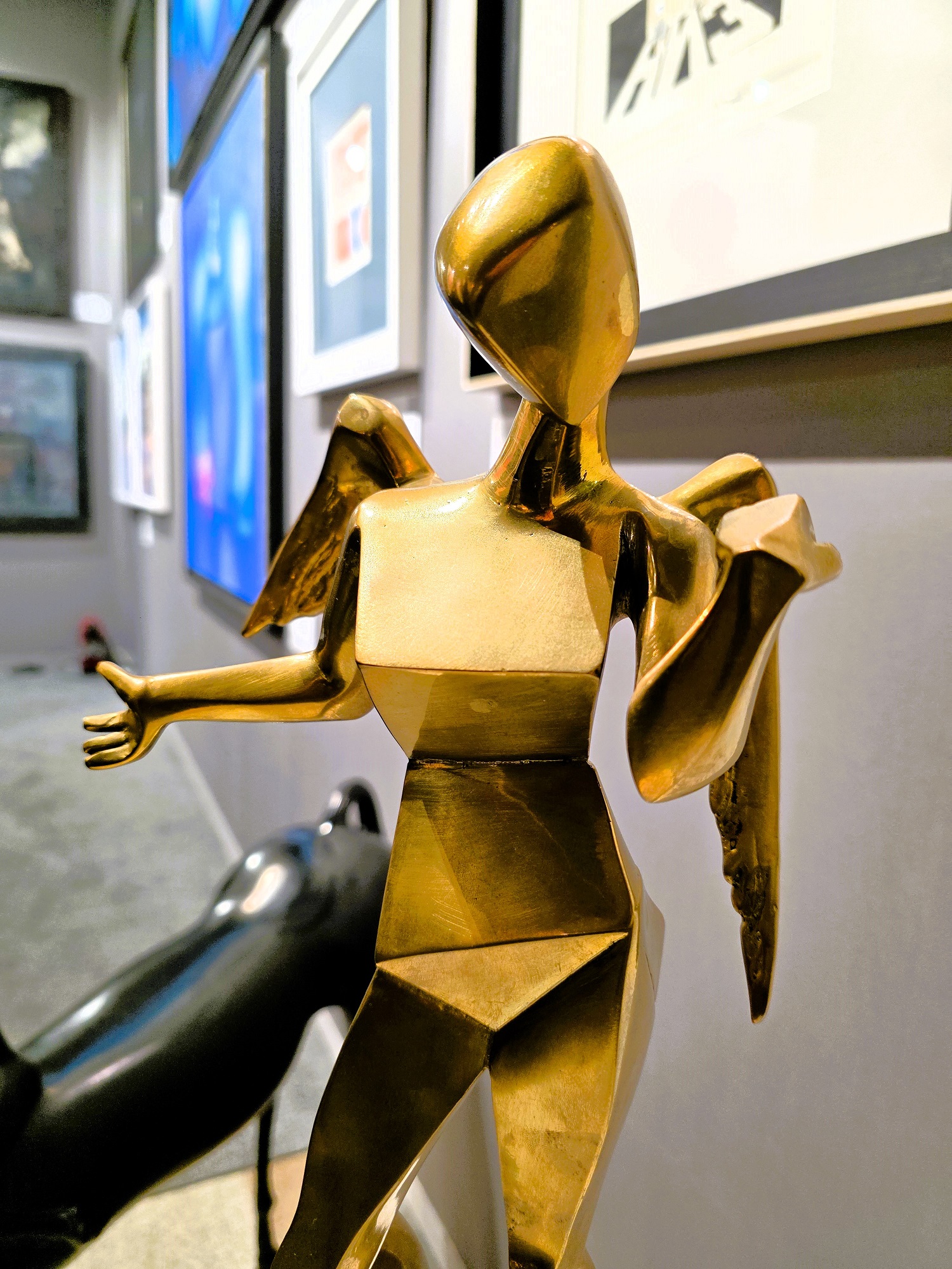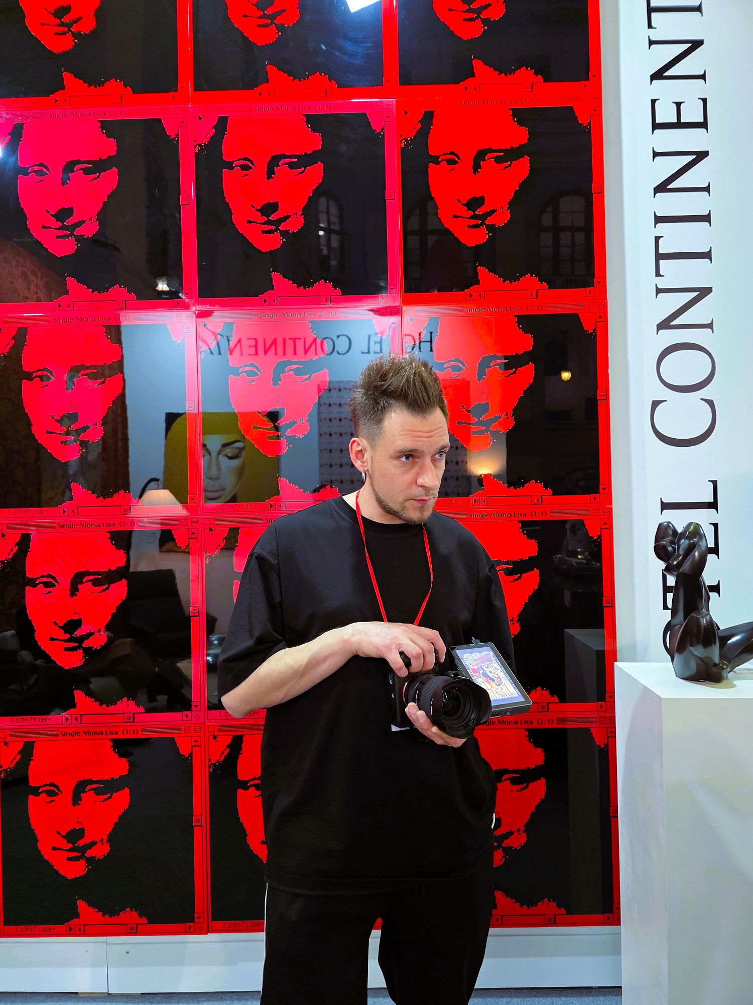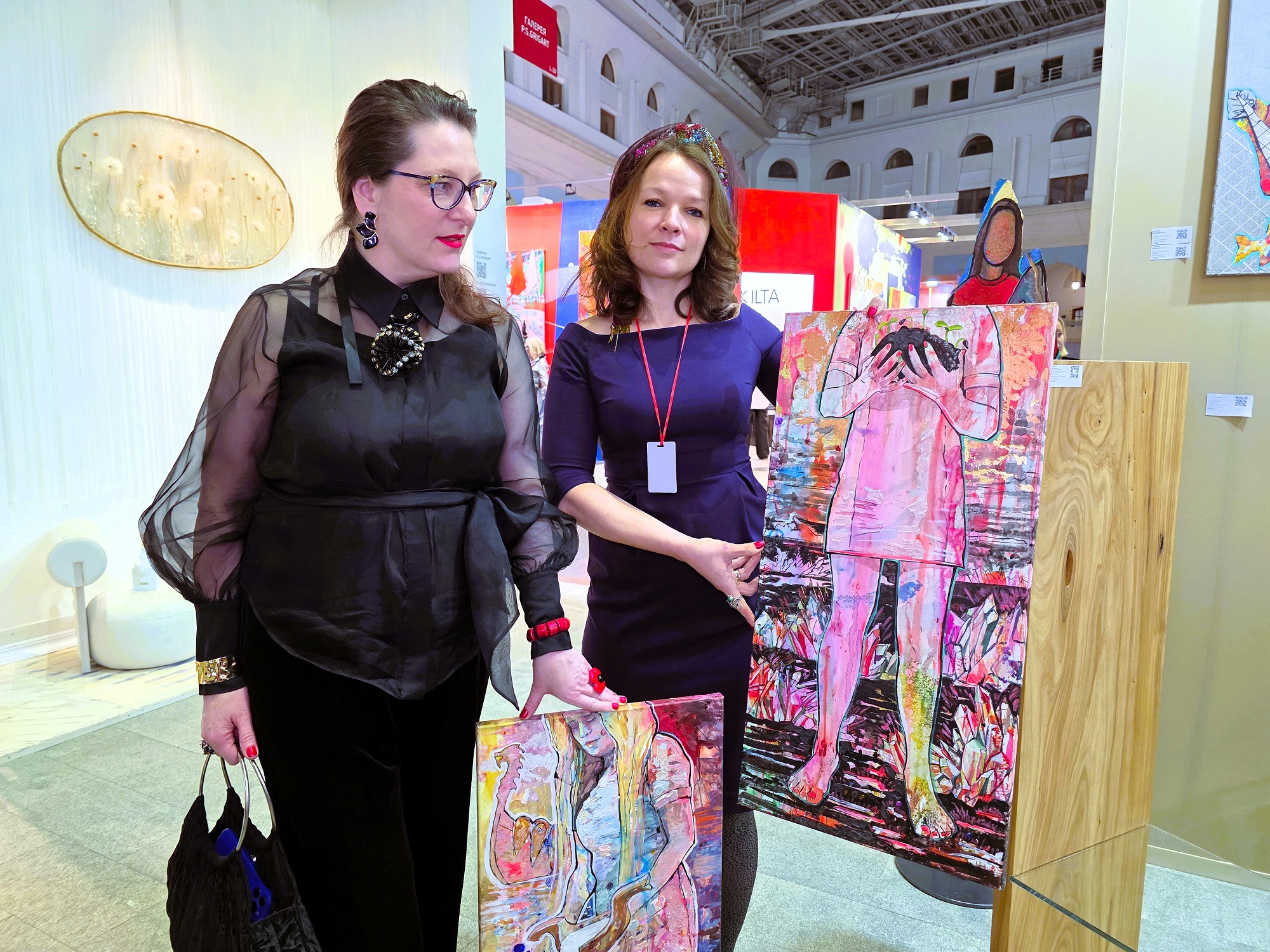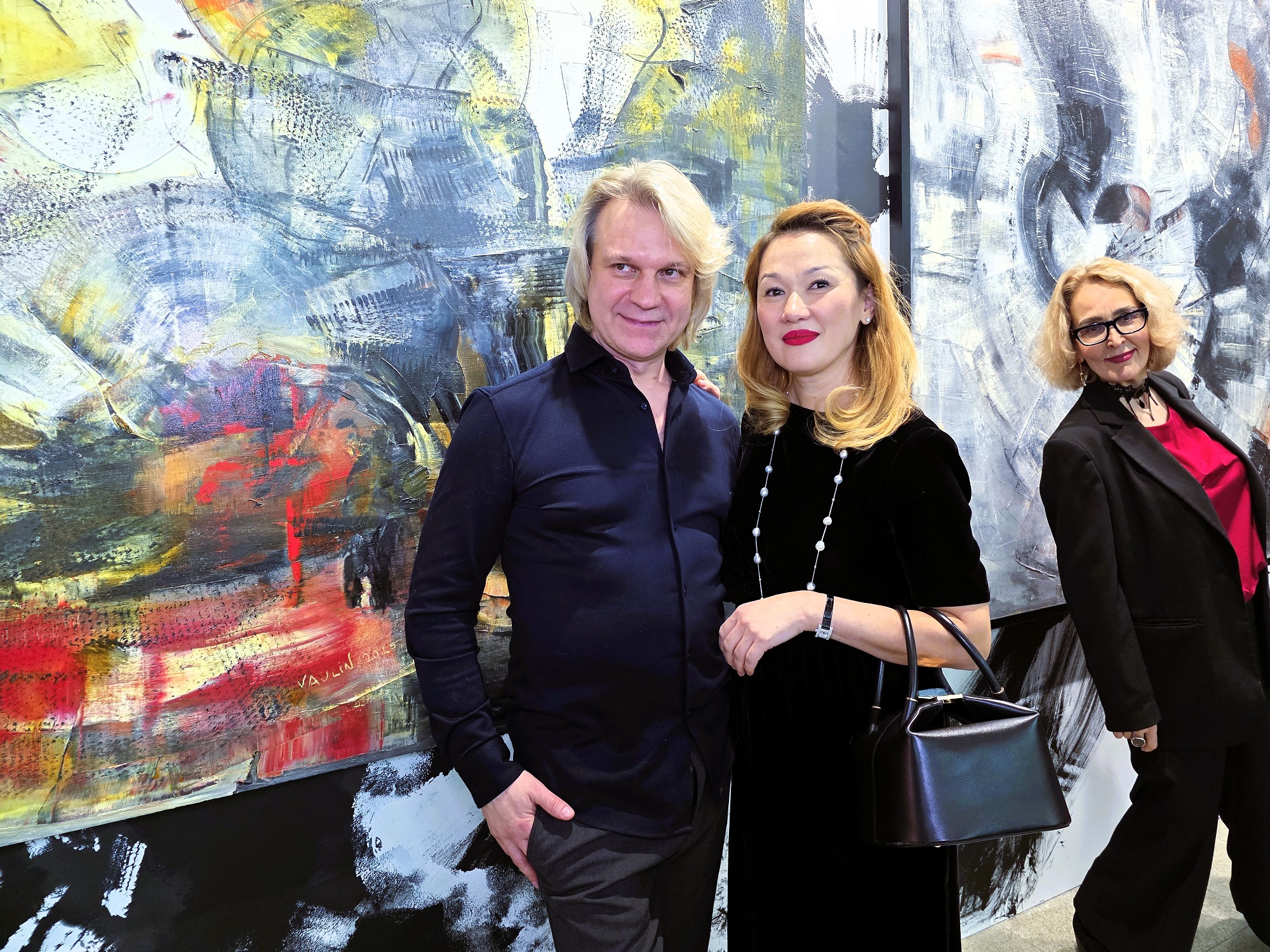 Давний любимец рублёвских жён и любовниц абстракционист Алексей Ваулин, видимо решил присвоить себе оливковый венок с модненького каре заслуженного арт-маркетолога Всея Руси, кои прописался на всех телевизионных каналах, и чьё имя в художественной среде называть явный «зашквар». Ваулин решил поиграть с тёмной стороной своего «Я». Нуарные нотки, резко переходящие из оформления стенда на холсты, пережили квантовую трансформацию и оргазмировали иссиня-чёрными всполохами, интуитивно привлекая к себе утончённых дизайнерш и тётенек, украшенных с головы до пят золотыми слитками из магаданских артелей. А если кто и достоин «кубка чемпиона» по количеству сделанных за время проведения салона селфи за отведённую минуту экранного времени, то это несомненно Ваулин и его демоничные абстракции. И что ещё заметилось: Алексей преднамеренно не маркировал свой стенд. Видимо из тонких материй мироздания уловив астральными фильтрами, что его почерк узнаваем из тысячи… что, по сути, и верно.