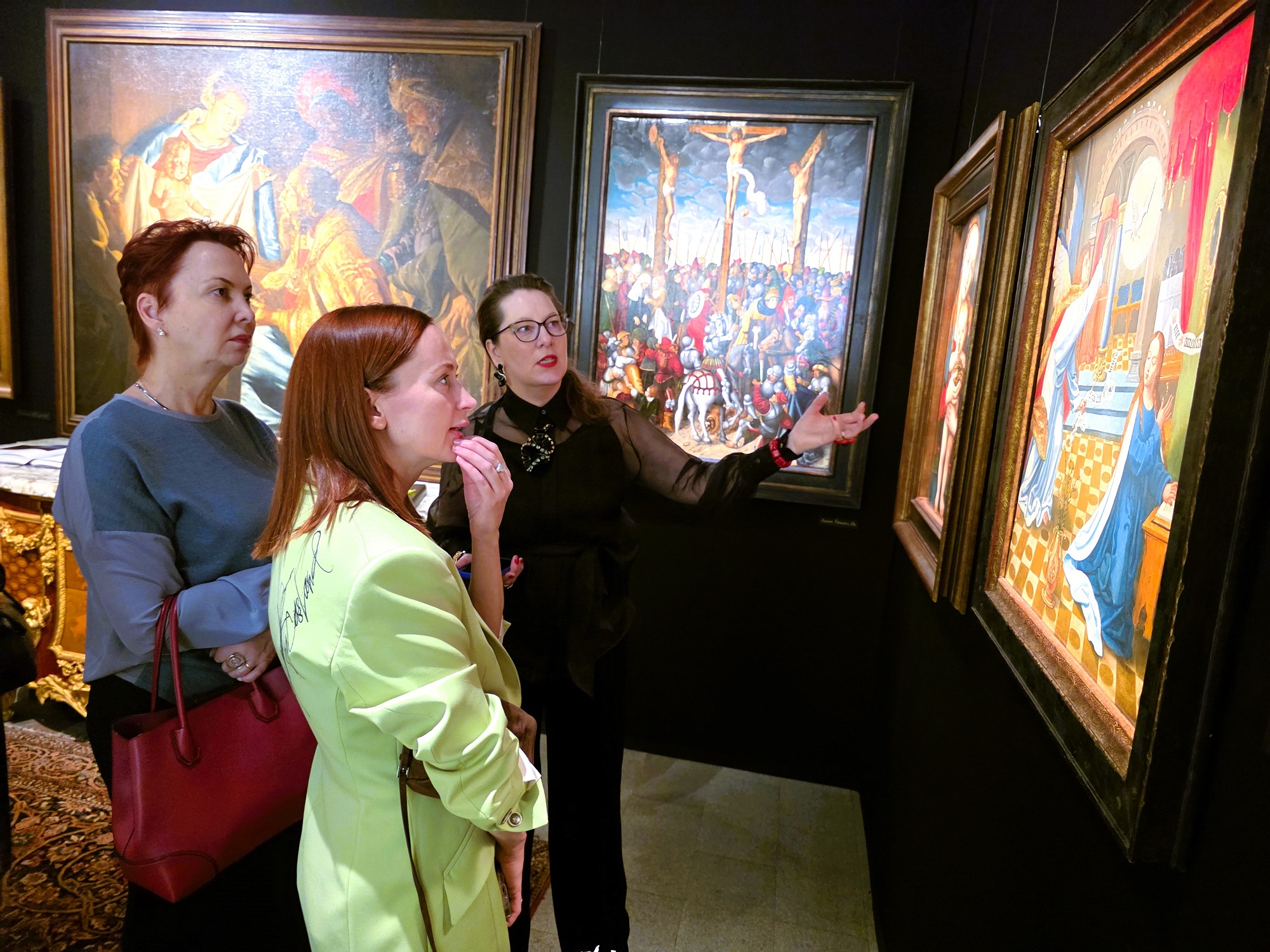 Всё это на второй день после открытия, с главной сцены салона, красиво, в форме искромётного часового стендапа, по полочкам, разложила галерист Ирина Богатикова. В отличии от многих утомлённых грузом собственного величия мэтров, чья седая грудь провисает до гульфика под килограммовым бременем государственных регалий, а их «птичий профессорский язык» разве что понятен паре десятков буквоедов, давно не видавших божий свет из подсобок Русского музея и Третьяковки… Так вот, в отличии от них, рассказ об инвестициях в искусство, вкупе с современной презентацией и интуитивным подходом, когда докладчик имеет эмпатическую связь с аудиторией, Богатикову хотелось видеть и слушать, потому как примеры были из собственного опыта, а не натужно зачитаны с пожамканой бумаги. Богатикова смогла привлечь и увлечь толпу вчерашних дизайнерш, коим стало узко в рамках оформительских проектов… после чего амфитеатр опустел…