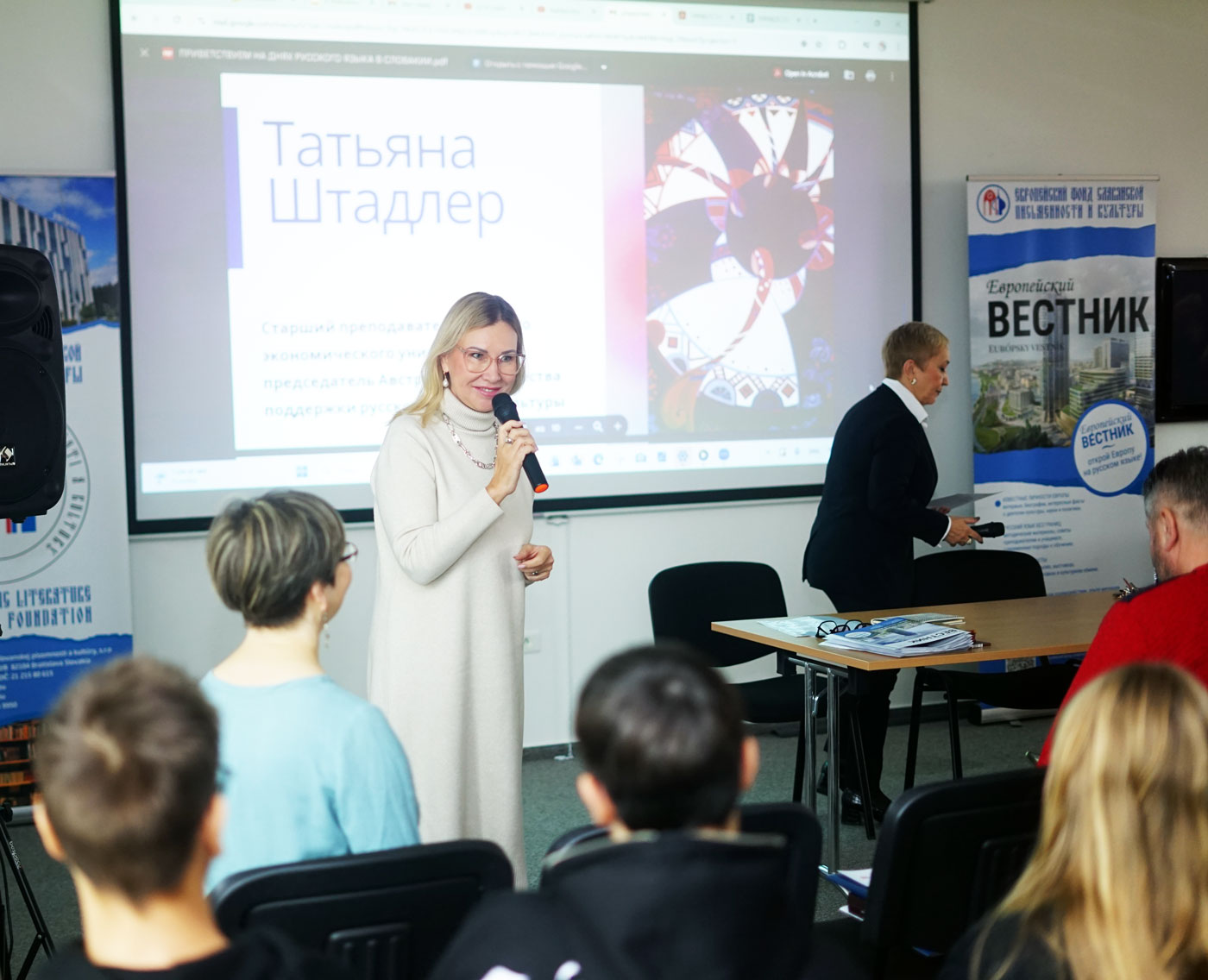 С приветственным словом и приглашением на будущие встречи выступила организатор мероприятия — преподаватель русского языка и классического танца Частной консерватории г. Мартина, председатель общественной организации «Руслана» Мария Владимирова. В завершение Н. Л. Ядрышникова представила журнал «Европейский Вестник», издаваемый Европейским фондом славянской письменности и культуры.