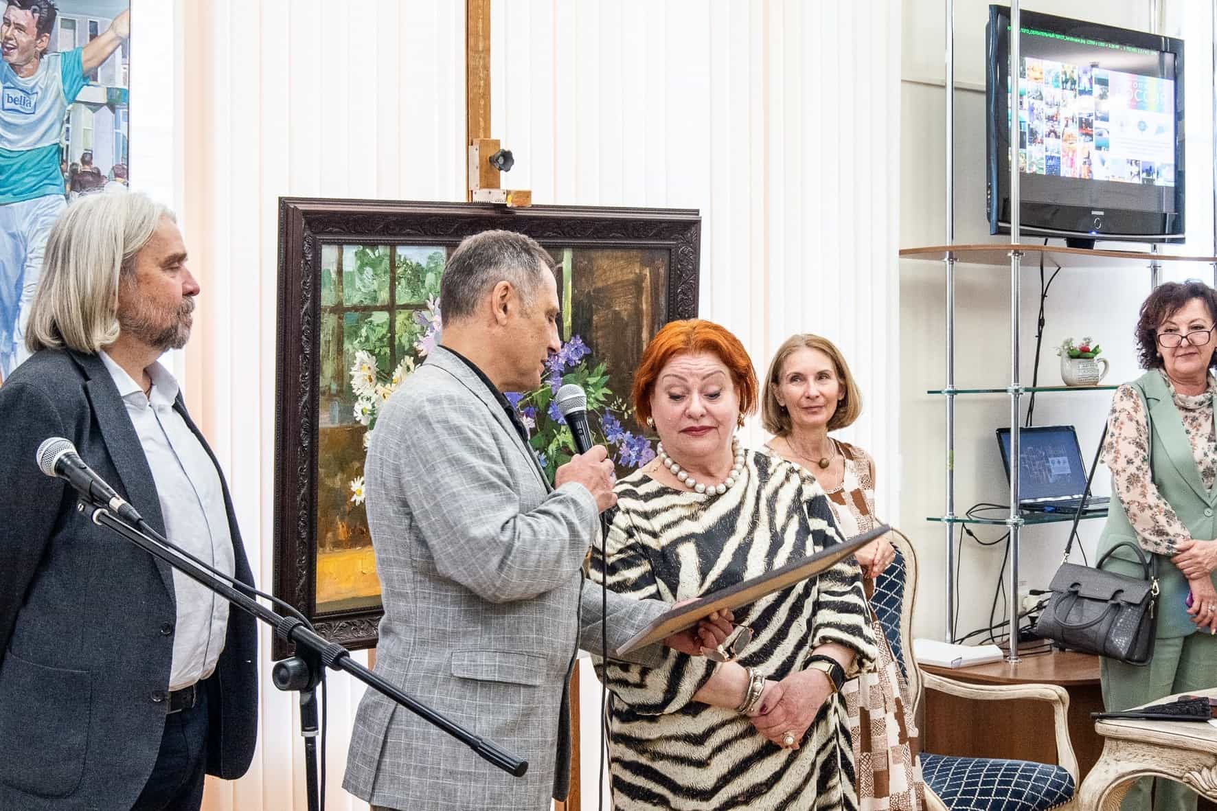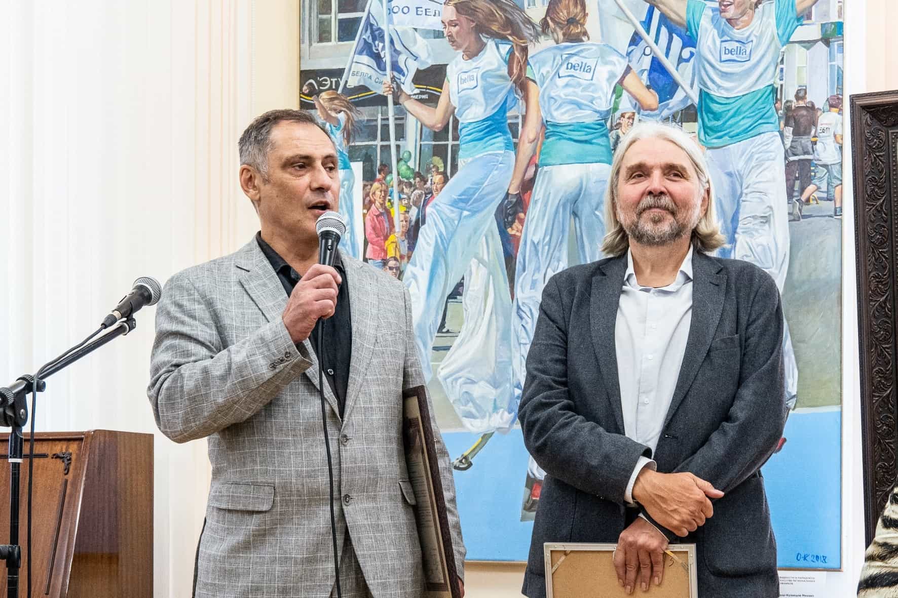 В завершении церемонии открытия выставки Евгений Ромашко и Константин Петров вручили директору музея Зое Белой почетные грамоты и адреса от ТСХР и РАХ, в которых отмечен профессионализм, большой личный вклад в дело развития и популяризации современного отечественного искусства.