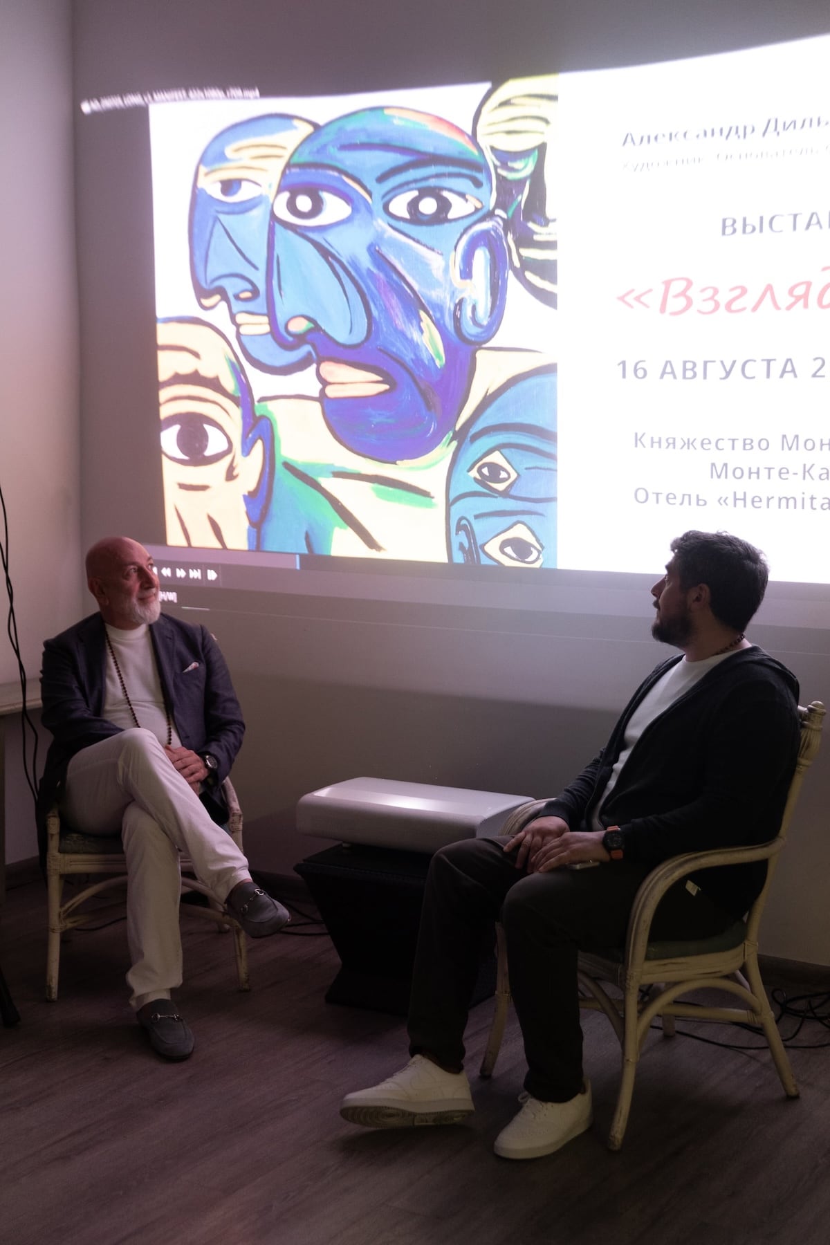 Выставка объединяла живопись, театр и личные размышления автора. В экспозицию вошли три ключевые серии, ранее представленные в Монако и Москве: «Взгляд» (отель Hermitage, Монако, 2013), «Игра» (отель De Paris, Монако, 2014) и «Когда цветет гранат» (отель The Ritz-Carlton, Москва, 2015).